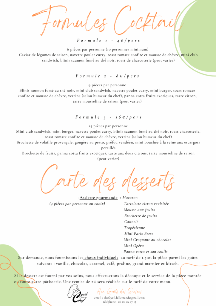 Formules Cocktail et Menus végétarien, enfant et prestataires
