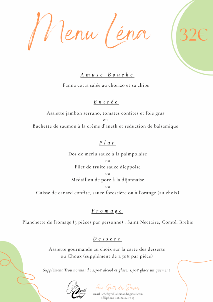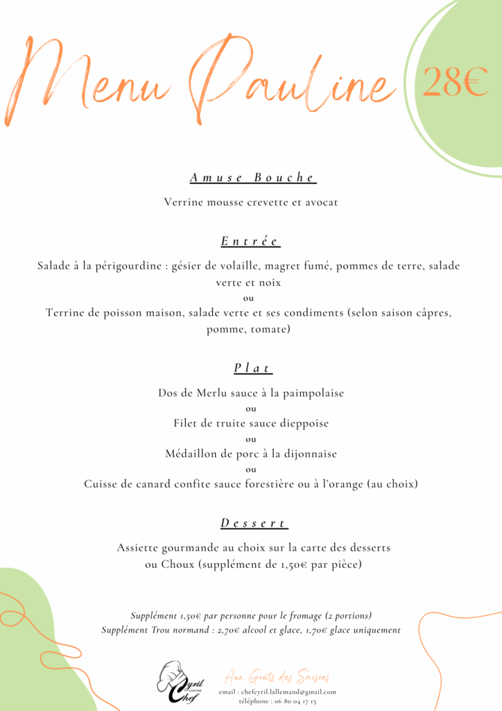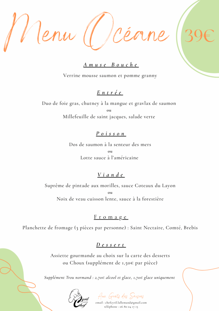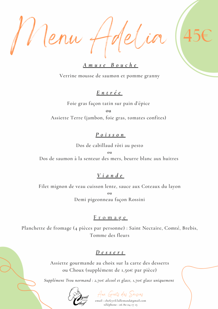 Nos menus sont non modifiables (hors suppléments), toute suppression ou modification n’entrainera pas une variation du prix du menu.