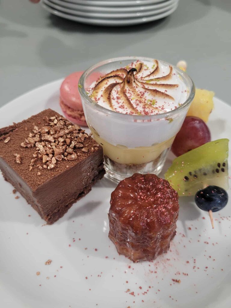 Si le dessert est fourni par vos soins, nous effectuerons la découpe et le service de la pièce montée ou toute autre pâtisserie. Une remise de 2€ sera réalisée sur le tarif de votre menu.